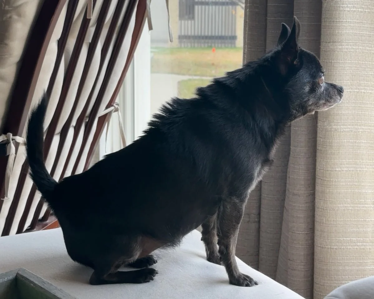 Dogs that are relaxed are capable of sitting, better yet laying down, and even better yet laying down with their legs outstretched to the side or behind them in a “sploot.” When standing, they will simply be in a neutral position with loose body language.